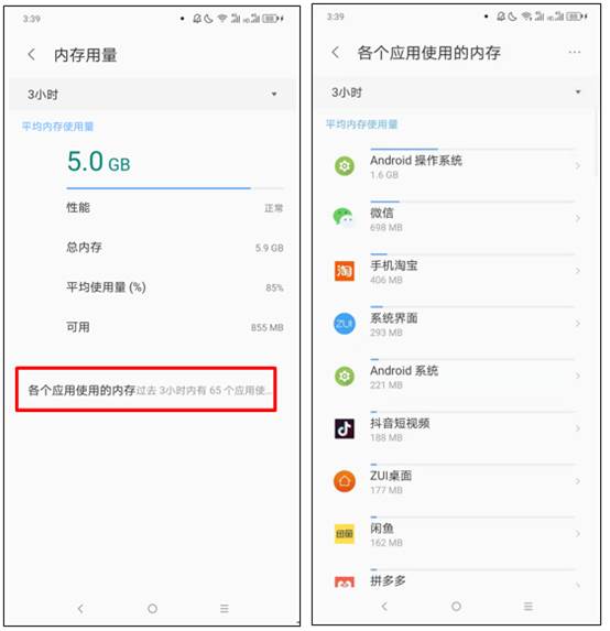 2、【设置】—【高级设置】—【开发者选项】—【内存】—即可看到内存的使用情况了。